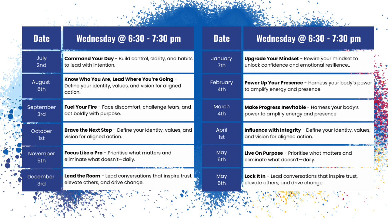 Here, you’ll develop habits that stick, build influence without authority, and reclaim your power to lead with purpose.